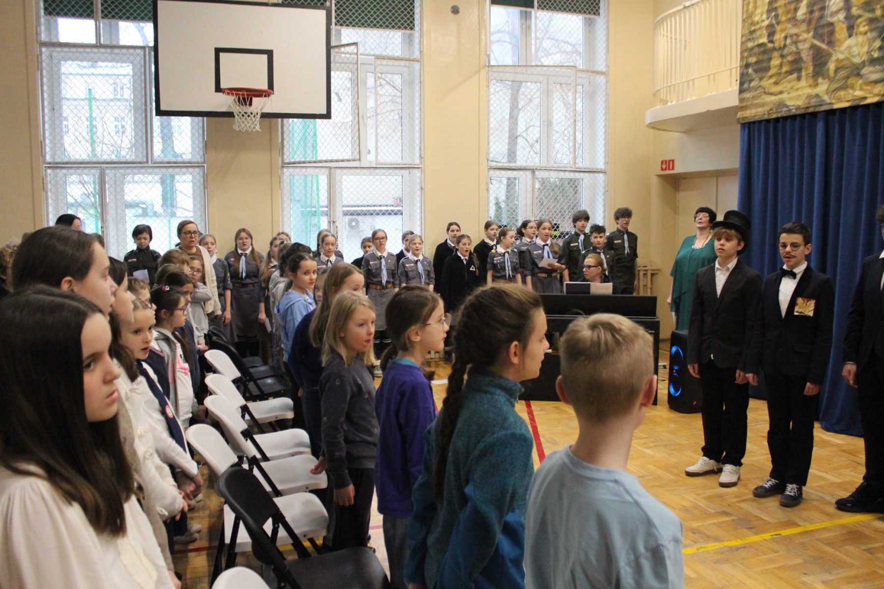 29 stycznia 2026 roku w SP4 odbył się uroczysty apel upamiętniający sylwetkę Patrona Szkoły – Romualda Traugutta. Uczniowie klasy 7a, w krótkich rekonstrukcjach historycznych, przypomnieli nie tylko powstańców, walczących o wolność ojczyzny, ale także pokazali zachowanie zdrajców ojczyzny i zaborców. Celina i Tosia, przy akompaniamencie pani dr Małgorzaty Lubienieckiej, pięknie zaśpiewały utwór Konstantego Gaszyńskiego „Czarna sukienka”. Aktorom z 7a towarzyszyli harcerze, pod opieką pani mgr Anny Krzywanek, którzy apel uświetnili śpiewem. Merytoryczną opiekę nad przygotwaniem apelu sprawowała pani mgr Agnieszka Łętocha, a nad całością przedsięwzięcia czuwał wychowawca, pan mgr Piotr Suder. Nauczyciele i uczniowie przygotowujący apel mają nadzieję, że ta nietypowa lekcja historii na długo zostanie w pamięci widzów.